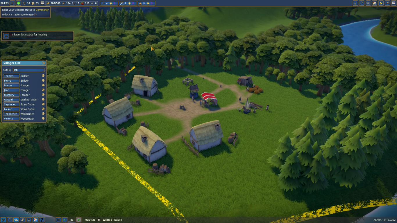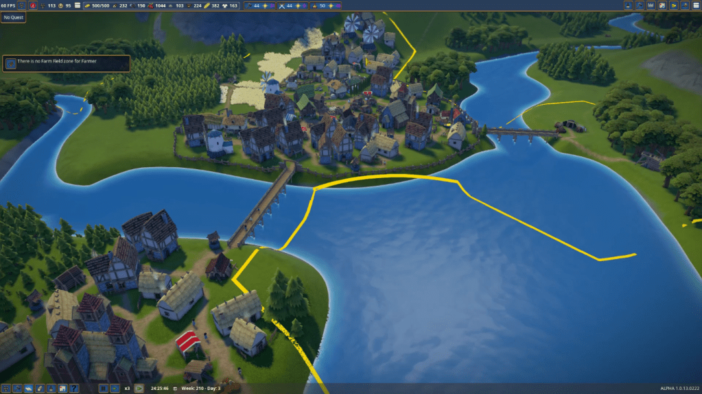 Though the game is largely well done, there are some issues that should be resolved sooner rather than later. Hitting the escape key does nothing. In almost every other game I have ever played, that opens the menu. According to reviews on steam, the game is prone to crashing. I have played the game for a about a week now and it did crash, but only once. Villagers refuse to use clearly placed doors on churches. They simply walk though the walls wherever they please. They also get stuck in their own homes. The only way to fix it is to let them get angry enough to leave the village because they cannot eat or drink, or delete the house and rebuild it. Lastly, one of the most annoying errors is a message that says “No farm field zone for farmers”. This message comes up despite the fact that half the land I own is designated as a farm field.