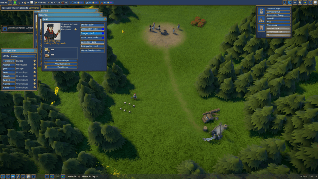 The most essential part of managing resources is your villagers. Without them, you have nothing. So don’t lose them. Their visual design may not be the most realistic, but they are adorable (unless you look at their portrait on the villager page, there they are quite ugly). These villagers walk with the weight of normal human beings, for they create a dirt path everywhere they walk. Most games require you to build a dirt path because that makes a lot more sense… Though these other games might be on to something because the villagers tend to create paths that make no sense, like walking all the way around a lake to build a bridge that crosses it instead of starting from the side they were already on.